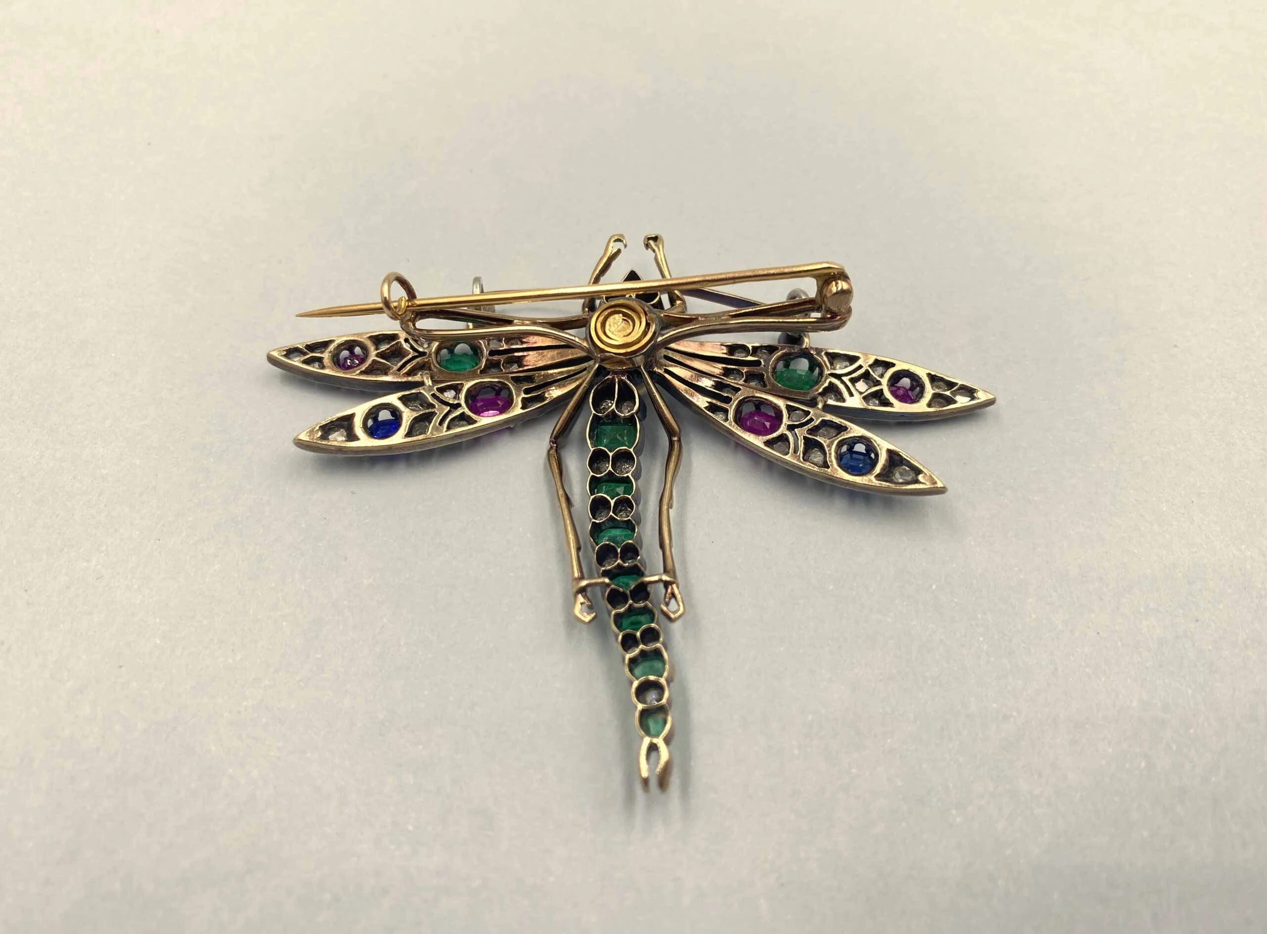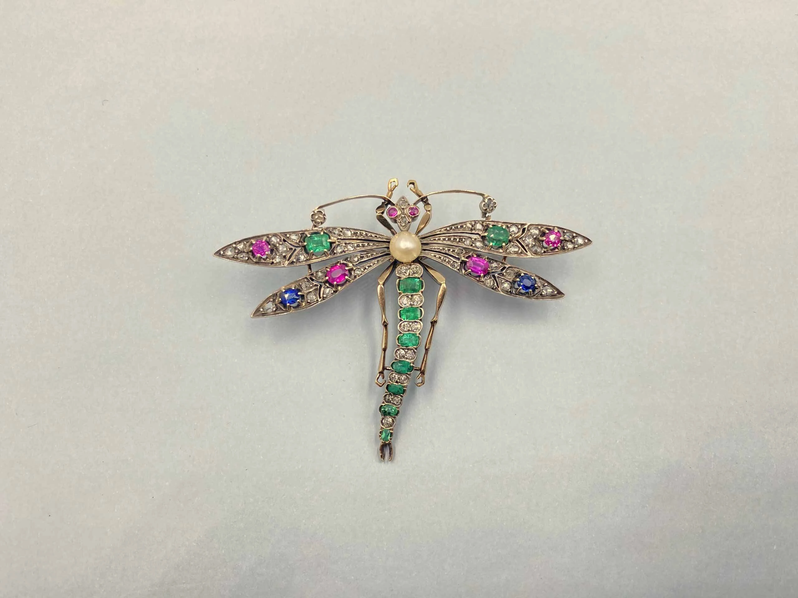 ALFIENTE TREMBLENT LIBELINHA EM OURO E PRATA COM PEDRAS PRECIOSAS
