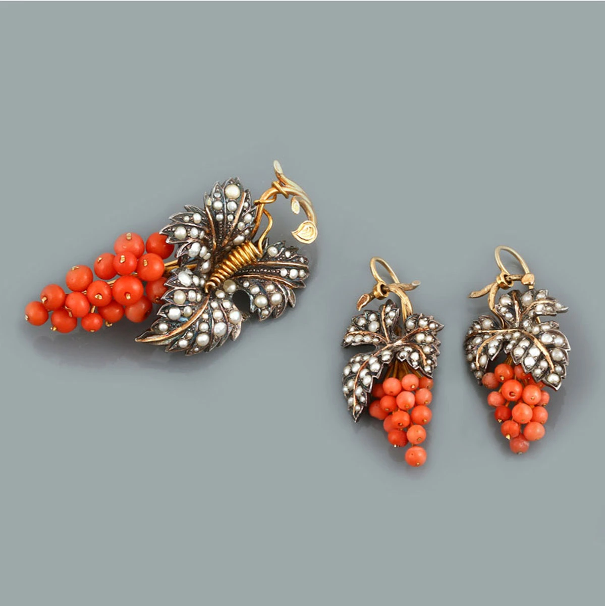 Ouro, prata, pérolas e coral